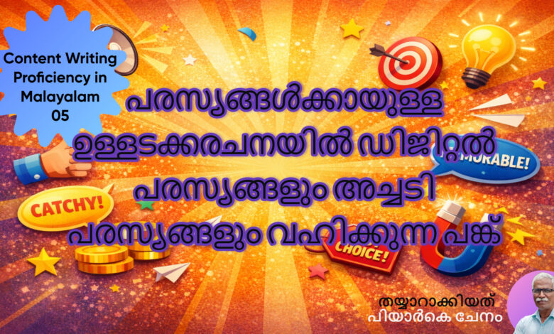 ആധുനിക ലോകത്തിൽ പരസ്യം വിപണനത്തിൻ്റെ ഏറ്റവും പ്രധാനപ്പെട്ട ഘടകങ്ങളിലൊന്നാണ്. ഒരു ഉൽപ്പന്നത്തെയോ സേവനത്തെയോ കുറിച്ച് ഉപഭോക്താക്കളെ അറിയിക്കുകയും അവരെ ആകർഷിക്കുകയും ചെയ്യുന്നതാണ് പരസ്യത്തിൻ്റെ പ്രധാന ലക്ഷ്യം. ഈ ലക്ഷ്യം സാധ്യമാക്കുന്നതിൽ ഉള്ളടക്കരചന (Content Writing) നിർണായക പങ്ക് വഹിക്കുന്നു. പരസ്യങ്ങൾ വിവിധ മാധ്യമങ്ങളിലൂടെ പ്രചരിക്കുമ്പോൾ അവയിൽ പ്രധാനപ്പെട്ട രണ്ടു വിഭാഗങ്ങളാണ് ഡിജിറ്റൽ പരസ്യങ്ങളും അച്ചടി പരസ്യങ്ങളും. ഓരോ മാധ്യമത്തിനും തനതായ സവിശേഷതകളും അവതരണരീതികളും ഉണ്ട്.